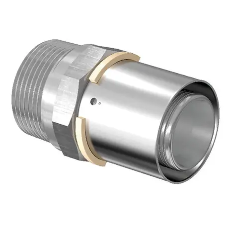 Tinatatud messing. Fikseeritud presshülsiga, värvkood stoppervõru ja lekkeindikaatoriga. Silindriline sisekeere vast. EN 10226‑1.