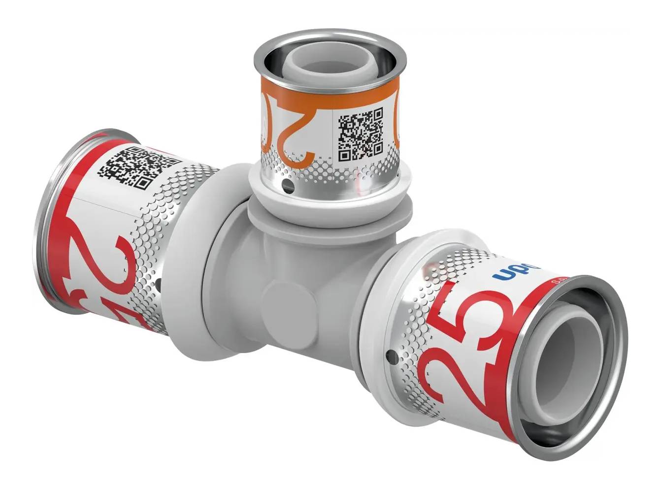 Materjal PPSU. Roostevabast terasest fikseeritud presshülsiga. Stoppervõru ja lekkeindikaatoriga, värvkoodiga.