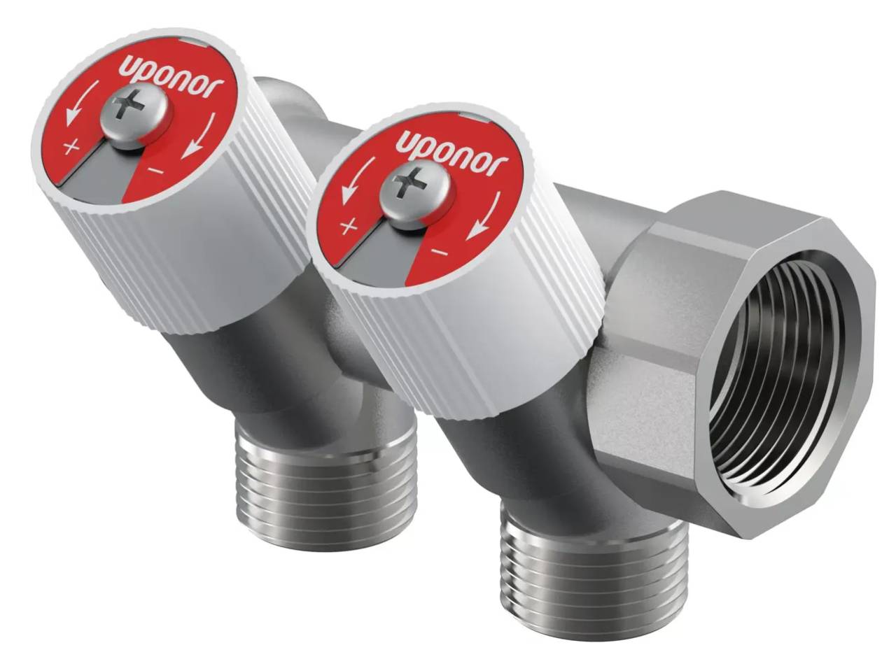 1002280 UPONOR UNI-C nikeldatud jaotuskollektor ventiilidega L, UNI G3/4"MT/FT 2xG1/2"MT C/C38mm