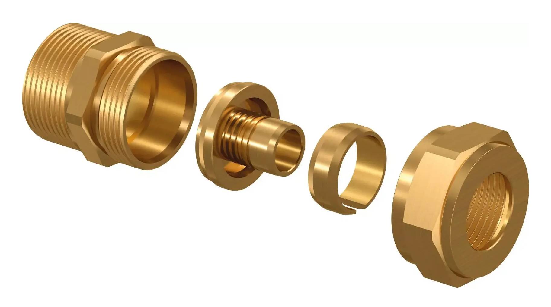Messingist surveliitmik Pe-Xa torude ühendamiseks.