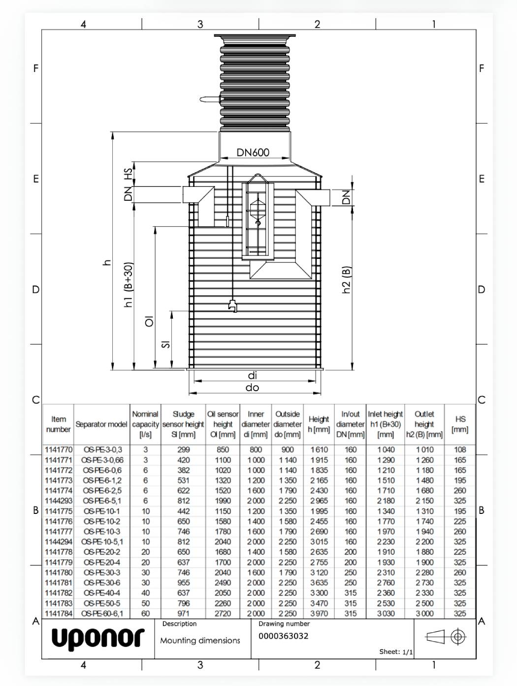 Tehniline joonis (Type_drawing_of_Uponor_Oil_Separator_1141771.pdf, 206 Kb) [Laadi alla]