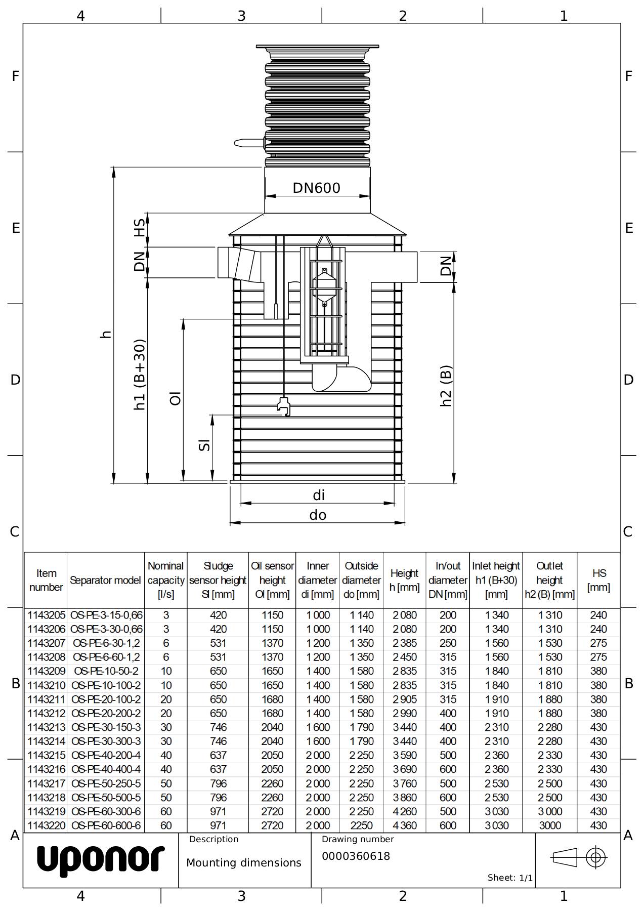 Tehniline andmeleht (Technical_Datasheet_Uponor_Oil_Separator_PE_6_60_1,2_bypass10_EN.pdf, 417 Kb) [Laadi alla]