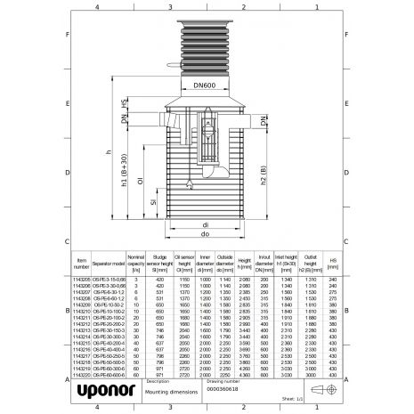 Tehniline andmeleht (Technical_Datasheet_Uponor_Oil_Separator_PE_60_300_6_bypass5_EN.pdf, 417 Kb) [Laadi alla]