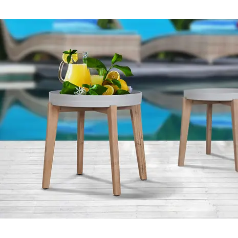 Lauaplaat: pruunikas komposiitkivi. Heledast akaatsiapuidust jalad.