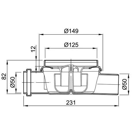 Plastikust põrandatrapp Flatline, läbivooluga DN50, vesiluku kinnitussügavus 30 mm, haisukindla membraaniga