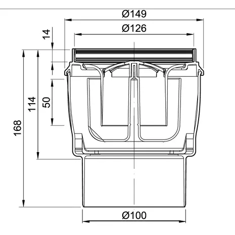 Plastikust põrandatrapp, vertikaalne äravool DN 100, haisukindla membraaniga