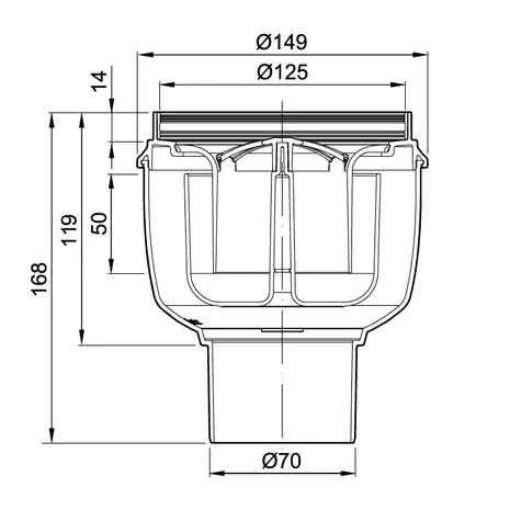 Plastikust põrandatrapp, vertikaalne äravool DN70, haisukindla membraaniga