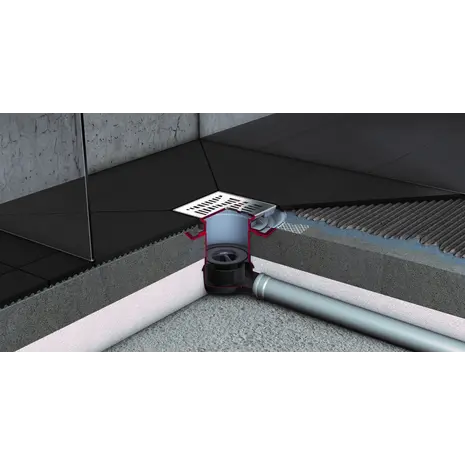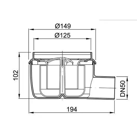 Plastikust põrandatrapp, horisontaalne äravool DN50, vesiluku kinnitussügavus 50 mm, haisukindla membraaniga