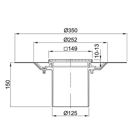 ACO trapikõrgendus Ø125, 36-135mm hüdroisolatsioonikraega, lukustatava restiga 140x140mm