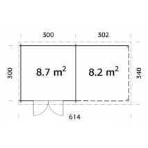 Aiamaja Ella 8,7+8,2m², 610x320 cm, seina paksus 28 mm