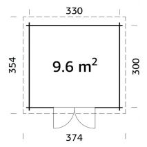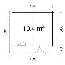 Aiamaja Emma 10,4 m², 380x320 cm, seina paksus 34 mm