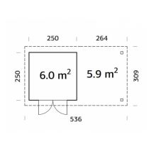 Aiamaja Lara 6,0 m², 250x250 cm, seina paksus 28 mm