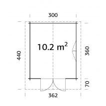 Aiamaja Sally 10,2 m², 320x380 cm, seina paksus 44 mm