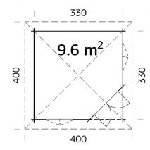 Aiamaja Lotta 13,9 m², 400x400 cm, seina paksus 34 mm
