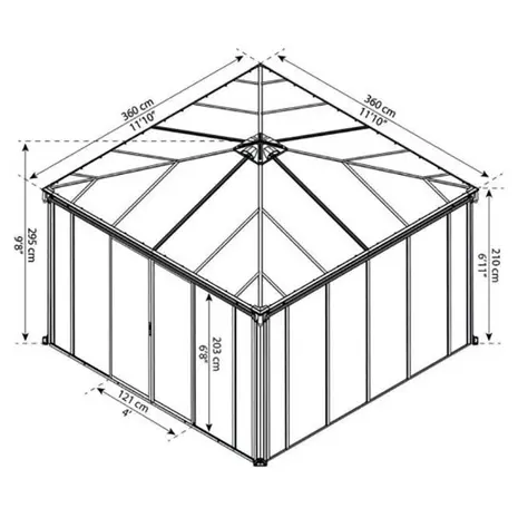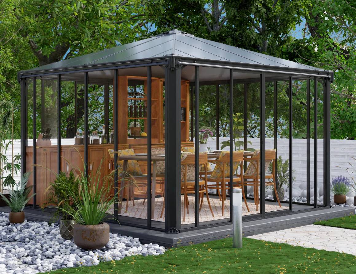 Aiapaviljon sobib kasutamiseks aastaringselt. Suured lükanduksed võimaldavad kasutada lehtlat poolavatult või kinnisena.