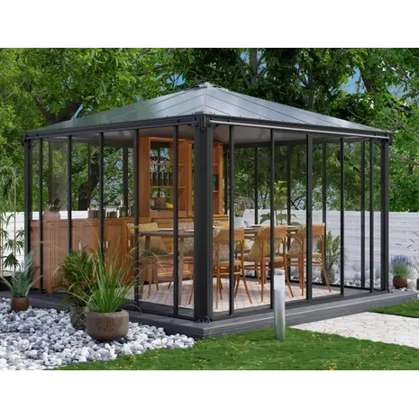 Tugevdatud roostekindla konstruktsiooniga alumiiniumist varjualune on loodud vastu pidama karmidele ilmastikutingimustele. Kahekihiline pronksitooni polükarbonaatkatus ei muutu aja jooksul kollaseks ega hapraks. Patenteeritud kruvivaba klaaspaketisüsteem on spetsiaalselt välja töötatud vihmalekke vältimiseks. 100% UV kaitse võimaldab ohutut puhkeaega õues.