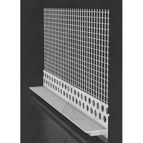 Armeerimisvõrgu ja iseliimuva PE paisuribaga PVC-profiil aknapleki tagasipöördega (U-kujuliste) otsakõrvade liitmiseks