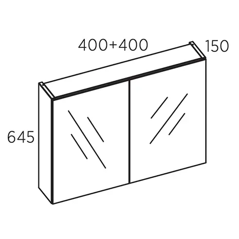 • Mõõdud: laius 800 mm (400 + 400 mm), kõrgus 645 mm, sügavus 150 mm