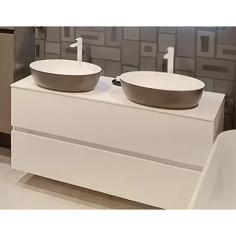 Xonyx solid surface satiinviimistlusega tasapind Balteco valamukappidele. Tasapinnas on valamu+segisti ava.