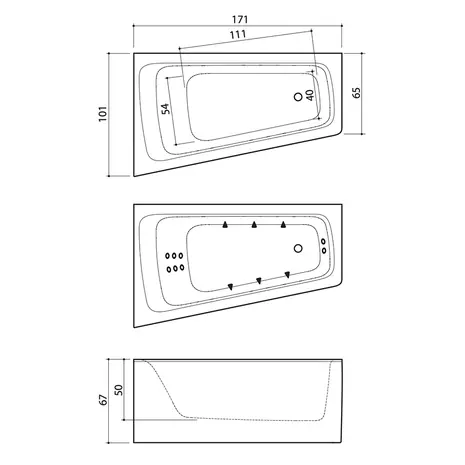 SlimLine juhtimissüsteemi nupud on paigutatud vanni siseküljele. Võimsus / voolutugevus: 1500 W / 7,0 A.