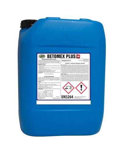 Efektiivne ja ökonoomne, happeline vahend betooni eemaldamiseks. Kasutamiseks betoonimasinatel, ehitusinventaril, põrandatel ja muudel pindadel. Tänu oma erilistele imbuvatele koostisosadele võimaldab efektiivselt eemaldada tsemendijäägid materjale kahjustamata. Betomex Plus LP on ka efektiivne pooride avaja betoonpõrandate paigaldamisel ning üldine tööstuslik puhastaja.