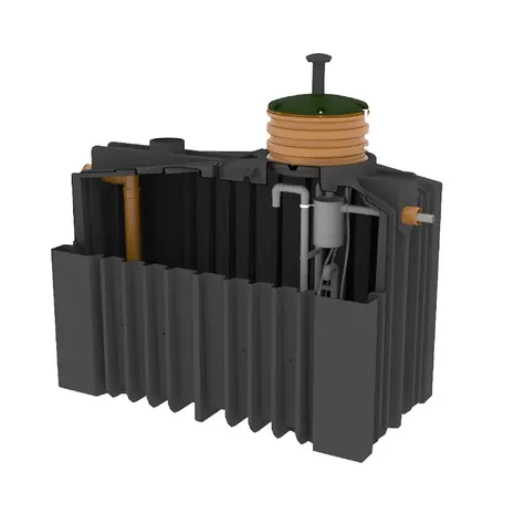 QuickOne+ lihtne konstruktsioon koosneb ühekambrilisest roostevabast terasest tugevdatud HDPE materjalist mahutist, millel on tasane alus lihtsaks paigalduseks. Sobib paigaldamiseks enamikele pinnastele ilma betooni tagasitäiteta.