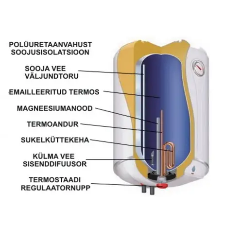 • Täiendavaks korrosioonikaitseks oomiline takisti termose ja sukelküttekeha vahel