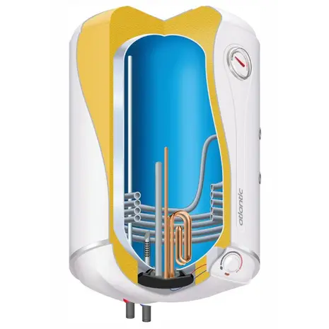 - Spiraalsoojusvaheti ja elektrilise sukelküttekehaga vertikaalne seinaboiler
