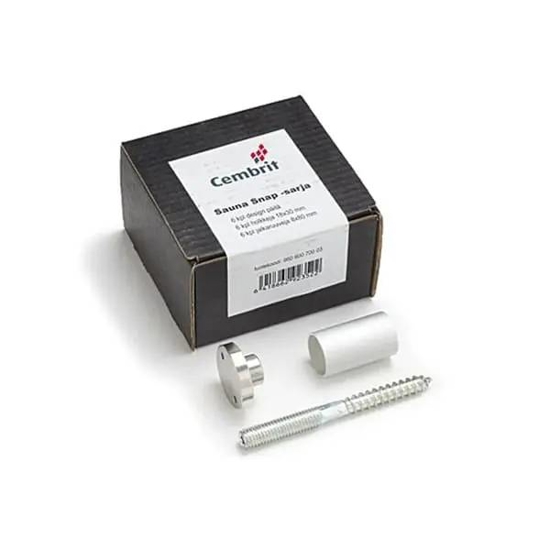 Cembrit Sauna Snap kinnituskomplekt on stiilne viis Cembrit Sauna plaatide kinnitamiseks. Komplekti kuuluvad kinnituskruvi, hülss ja Disain-pea. Hülsiga tagatakse Sauna plaadi kaugus põlevast materjalist, nt. sauna puitpaneelist.