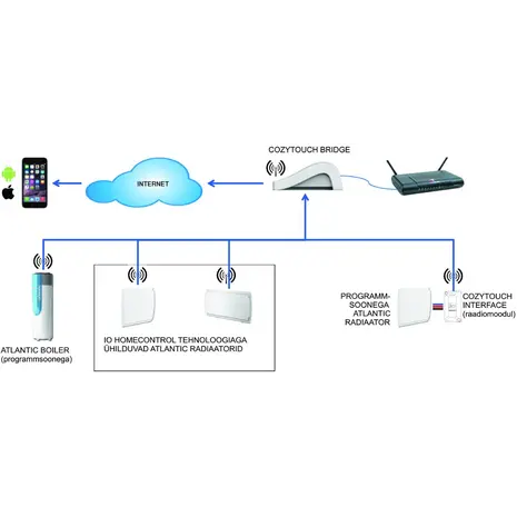 Cozytouch Bridge on liides, mille abil saab IO Homecontrol tehnoloogiaga sobituvaid Atlantic seadmeid juhtida Apple või Android nutitelefoni või tahvelarvutiga.