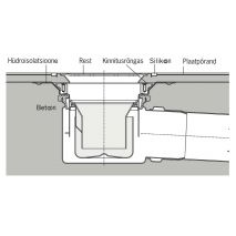 Trapp ACO EG150 teleskoopne / Betoonpõrandasse paigaldatav, hüdroisolatsiooni äärikuga, vertikaalne äravool DN 100