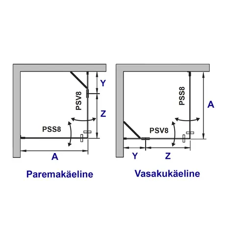 Võimalikud variandid ja mõõdud (välisgabariit) - vaata joonist: