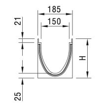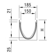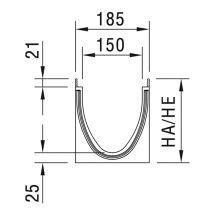 Renn-kanal ACO MULTILINE V 150, pikkus 100cm (rennikorpus põhjakaldeta), LLD toruühendusega, tsingitud terasest äärikuga