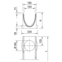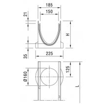 Renn-kanal ACO MULTILINE V 150, pikkus 50cm (rennikorpus põhjakaldeta), LLD toruühendusega, tsingitud terasest äärikuga