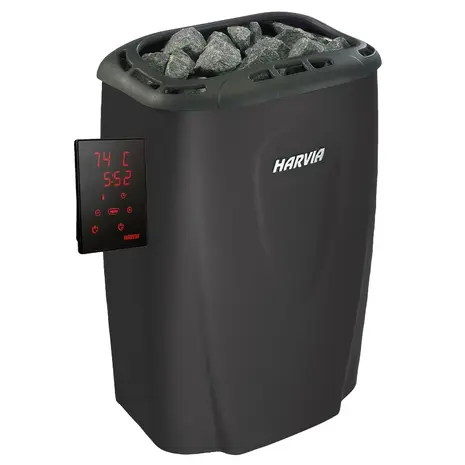 Harvia Moderna on kõrgklassi disainkeris, mis kütab sauna sobiva temperatuurini kiiresti ja vaikselt. Patenteeritud juhtimiselektroonika tagab soojuse ühekraadise täpsusega. Eraldiasetsev elektrooniline andur hoiab sauna temperatuuri ühtlasena kogu saunaskäigu ajal. Kütteelemendid on vastupidavad ka väga intensiivsel kasutamisel. Modernal on digitaalne juhtpaneel, mis paigaldatakse kerisest eraldi. Paneelil on valgustatud lülitid ja digitaalne näidik, millel kuvatakse seatud temperatuur ning tööaeg. Tööaja saab valida vahemikus 2 kuni 8 tundi. Tehase standardseadistus on 4 tundi. Eelhäälestusaja ulatus on 0 kuni 18 tundi.