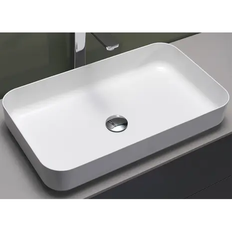 Nelinurkne ümarate nurkadega pinnapealne glasuuritud terasest valamu. Sobib valamukapiga alates mõõdust 80 cm.