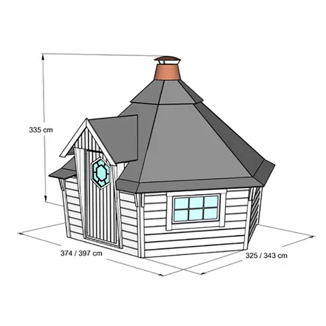 - Seina välismõõdud: 371 x 321 / 397 x 343 cm