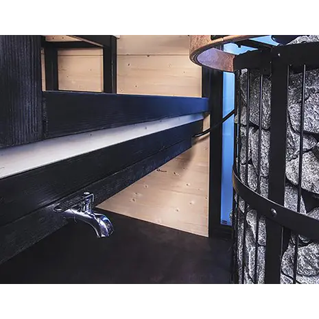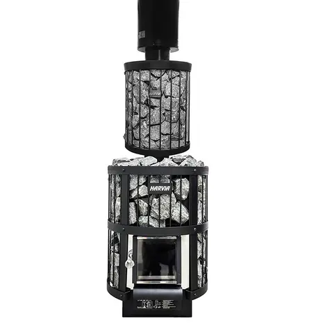 Stiilses Thermio veesoojendis kuumeneb vesi kiiresti, sest paaki läbiv toru toimib ühtlasi ka soojendi seinana. Veesoojendi esikülg on kaetud kerisekividega, millele saab samuti leiliks vett visata.