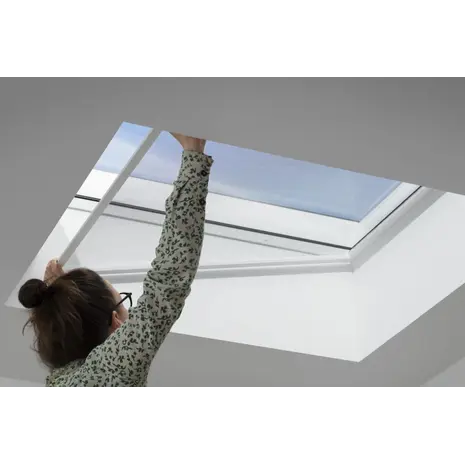 Avaleht/Viimistlus / aknad-uksed/Katuseaknad/Lamekatuseaknad VELUX/Aknakatted kumera ja lameda klaasiga lamekatuseakendele/Käsitsi juhitav putukavõrk ZIU / 100×100 cm