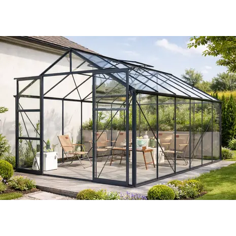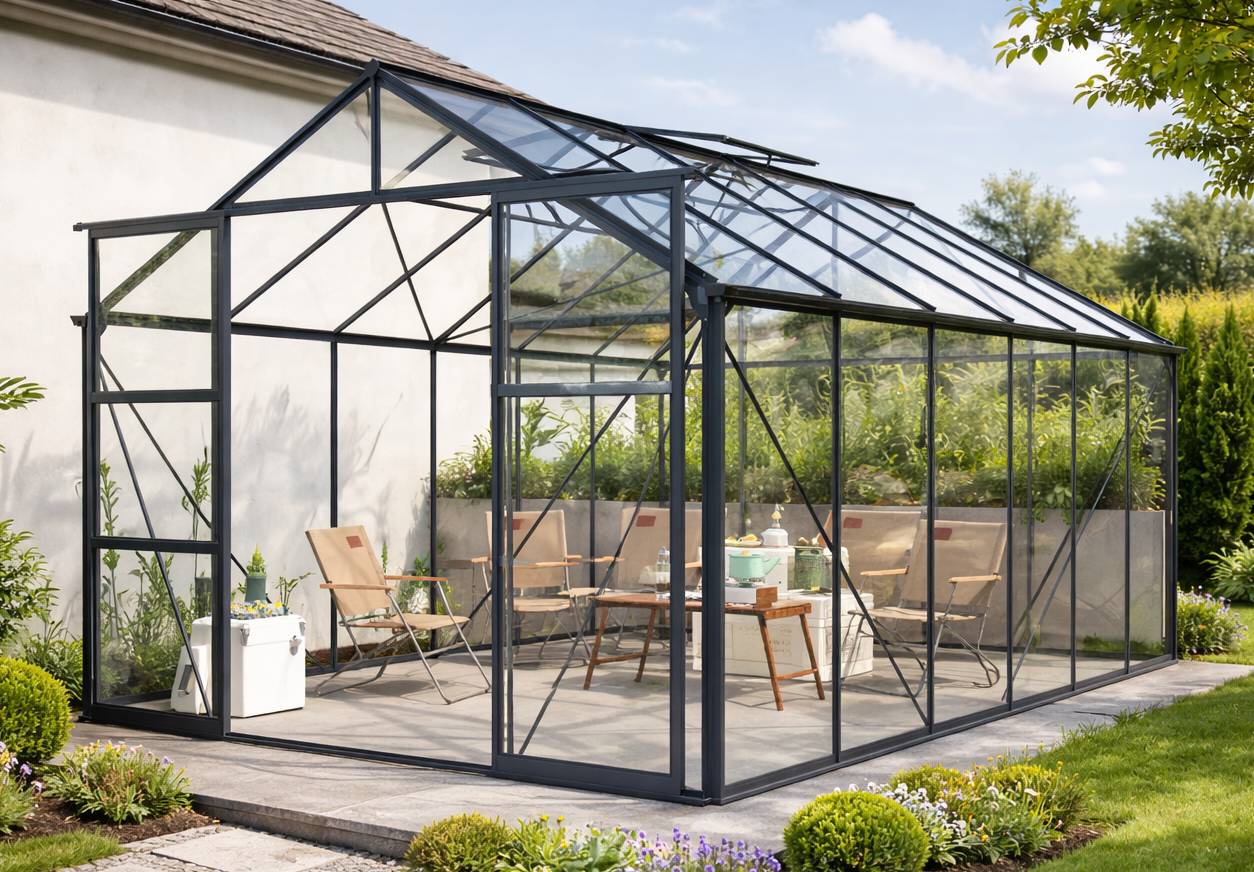 Tugeva karastatud klaasi ja vastupidava alumiiniumkarkassiga klaaskasvuhoone