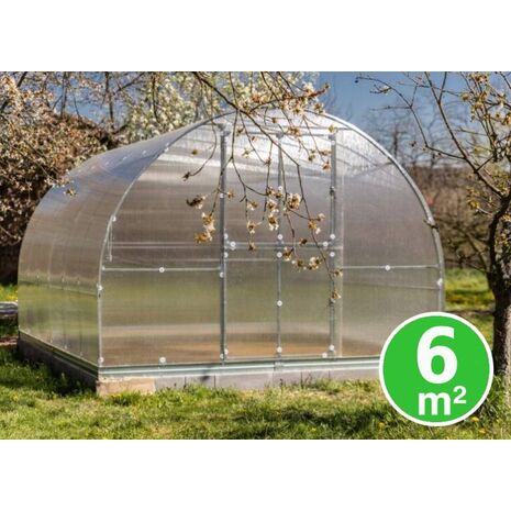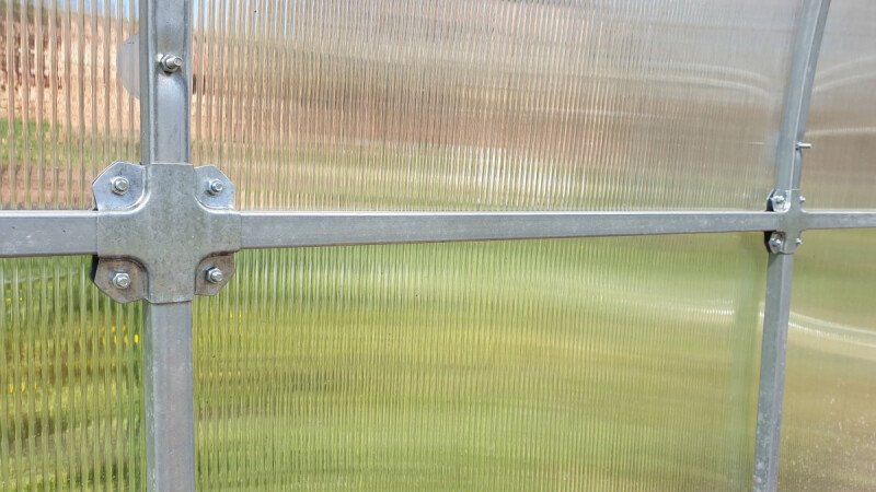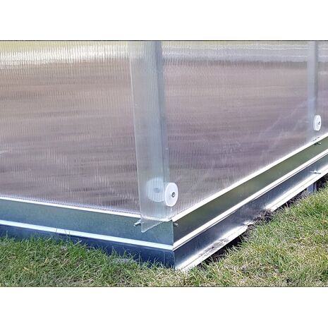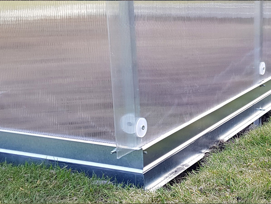 NB! Kasvuhoonel on 10 cm kõrgune alusraam 1 mm paksusest tsingitud terasest. Kasvuhoonekatte toetuspind on ühtlane läbi võlvide ja risttalade.