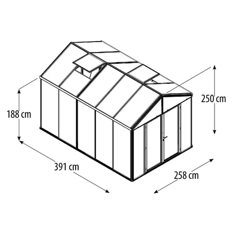Alusraam kuulub komplekti. Alusraamiga saab kasvuhoone kinnitada otse maapinnale või muule ettevalmistatud pinnale (puitterrass või kivipind). Vundament pole kohustuslik, kuid soovituslik.