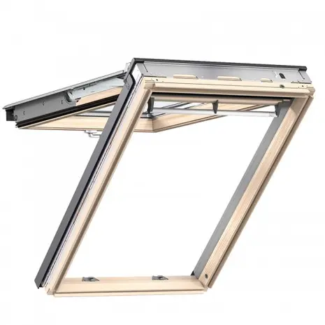 VELUX GPL - kahesüsteemne - alt panoraamaknaks avatav ja ülevalt pöördtelghingedega avatav liimpuidust lakitud katuseaken