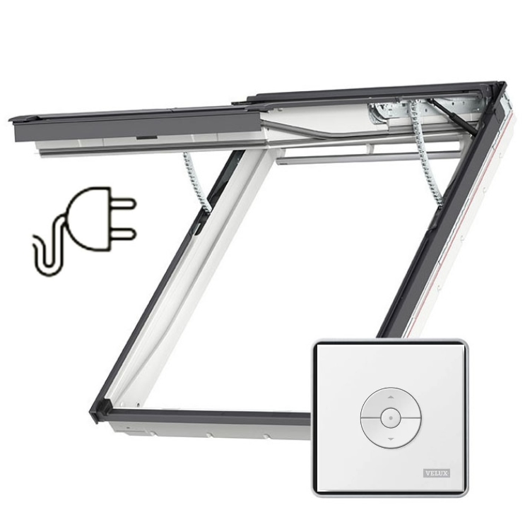 VELUX GPU 006621 - elektriliselt juhitav katuseaken pakub panoraamvaadet ja tekitab ühe nupulevajutusega tunde nagu oleksid rõdul. Aknale on tehases eelpaigaldatud mootor. Puitsüdamik on kaetud hooldusvaba polüuretaankattega,