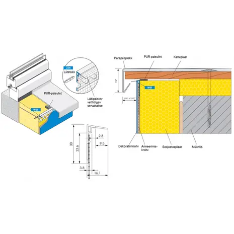 FEBA-TEX-ATTIKA katuseparapeti pleki ja aknapleki alusprofiil