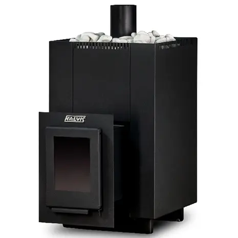 Saunakeris Kalvis PR2-SN on läbi seina köetav. Kerisel on klaasuks.