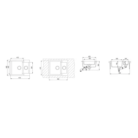 • Valamu laius: 610 mm
