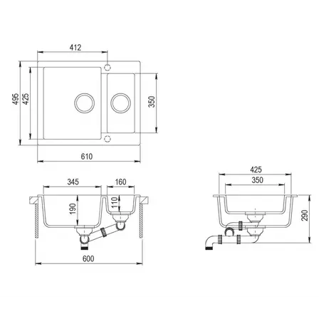 • Valamu sügavus: 495 mm