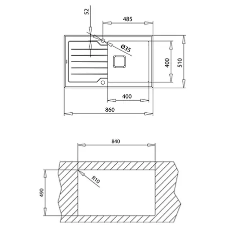 Valamut on võimalik paigaldada kahte pidi ning mõlemale küljele on loodud segisti augu eeldus (löökauk).