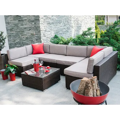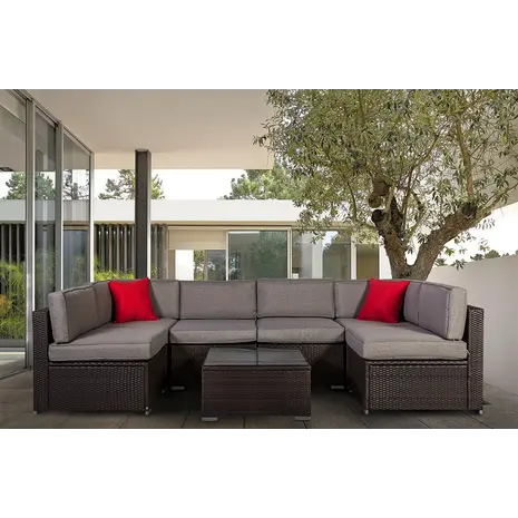 Aiamööbli komplekt Cliff patjadega: laud ja nurgadiivan.